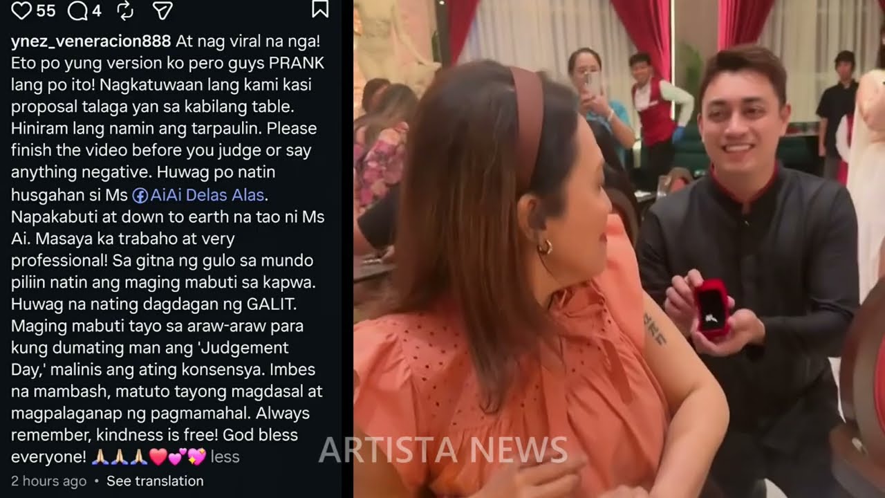 Sa isang gabi na puno ng ilaw, kamera, at bulong ng kasaysayan, muling bumigkis ang mundo ng showbiz sa isang sandaling puno ng misteryo, emosyon, at dramatikong kilig. Hindi pangkaraniwan ang eksenang naganap, at para sa marami, ito ay tila isang kwento na nabuo sa pagitan ng mga pahina ng isang nobela—isang nobela ng pag-ibig, pangarap, at pampublikong pananabik. Ang pangalan ni Aiai Delas Alas ay muling sumikat sa spotlight, hindi sa pamamagitan ng kanyang talento sa entablado o sa pelikula, kundi sa isang napaka-personal at napaka-sensational na yugto ng kanyang buhay: ang wedding proposal at engagement na nasaksihan nina Ara Mina at Ynez Veneracion.